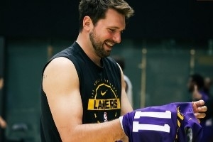 今天湖人球員們都沒有穿著各自號碼的訓練服,而是都穿上了隊友的號碼。東契奇穿上了海斯的11號,詹姆斯穿了德魯·蒂米的17號,肯納德穿了東契奇的77號,布朗尼穿的則是拉拉維亞的12號等等。