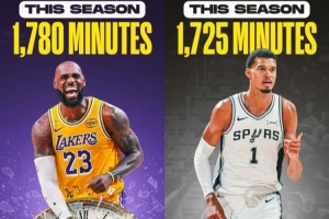 本賽季文班亞馬出戰59場比賽,場均出戰29.3分鐘