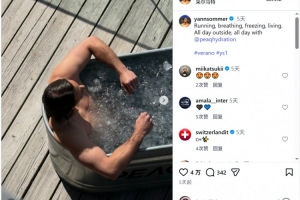 體育資訊3月30日訊 國米門將索默更新社媒動態,曬出在瑞士泡冰浴的照片。