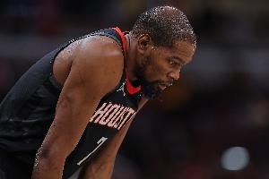 上半場,火箭球星杜蘭特遭對手嚴(yán)防,出場17分鐘11投僅2中,三分3中1、罰球4中4拿到9分2籃板2助攻,正負(fù)值+1。