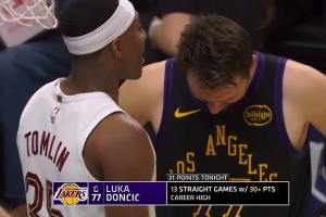 體育資訊4月1日訊 NBA常規賽,湖人對陣騎士,東契奇已經得到31分。