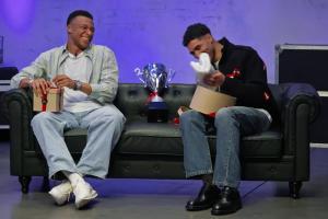 體育資訊04月03日訊 姆巴佩、瓊阿梅尼和阿什拉夫近期參與了訪談節(jié)目《橋》,節(jié)目開場(chǎng)階段,在嘉賓獲贈(zèng)禮物環(huán)節(jié),阿什拉夫收到了一座獎(jiǎng)杯和一條毛巾,而這自然是指此前非洲杯決賽中摩洛哥與塞內(nèi)加爾之間的“毛巾大戰(zhàn)”,以及非洲杯冠軍改判事件。