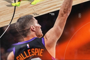 第二節(jié)比賽,吉萊斯皮再中三分,本場已命中2記三分,目前總數(shù)227記,超越昆汀·理查德森創(chuàng)造太陽隊史單賽季三分命中數(shù)新紀錄!