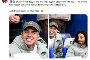羅馬諾曬照并寫道:“在羅塞尼爾決定對他處罰兩場禁賽后,恩佐今天來到斯坦福橋看球。”