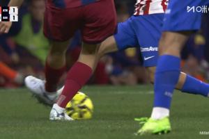 下半場比賽剛剛開始,馬丁拼搶時蹬踏阿爾馬達,主裁判一開始對其出示直紅。回放顯示,馬丁解圍先踢到皮球。VAR介入,主裁親自觀看回放后改判為黃牌!