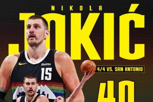 自有失誤統計以來,約基奇成為NBA歷史首位單場至少拿下40分10助0失誤的中鋒球員。