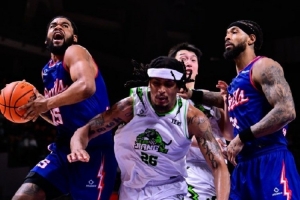 末節(jié)決戰(zhàn),董健連線(xiàn)刁展望,籃下輕松打進(jìn)。球隊(duì)連續(xù)破壞對(duì)手發(fā)球,瓊斯接管比賽,連續(xù)上籃得手。所羅門(mén)籃下暴扣,比分膠著之際,阿諾斯克籃下強(qiáng)勢(shì)造犯規(guī),兩罰穩(wěn)穩(wěn)命中。隨后唐才育命中關(guān)鍵三分,一舉鎖定勝局。全場(chǎng)比賽結(jié)束,香港金牛以86-82險(xiǎn)勝江西鯨裕清酒,系列賽總比分2-0領(lǐng)先。