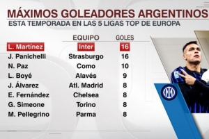 本賽季五大聯(lián)賽阿根廷球員射手榜: