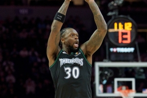 森林狼球員蘭德爾上半場整體發揮穩健,第二節更是接連拿分幫助球隊將比分反超。