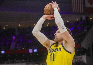 體育資訊4月6日訊 NBA常規(guī)賽,步行者半場58-55領(lǐng)先騎士。