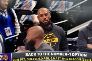 湖人媒體??????????????????曬出詹姆斯賽前熱身直播畫面,直播方配文:“重回球隊頭號選擇(BACK TO THE NUMBER-1 OPTION)!“