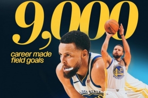 加上這4個進球,庫里生涯運動戰(zhàn)進球數達到9000,歷史第26人。