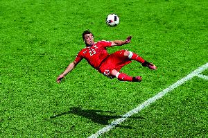 這“特別的事”便是一記精彩絕倫的倒掛金鉤——他用左腳完美地迎球抽射,皮球直掛球門死角,彈地后越過波蘭門將法比安斯基的指尖,應聲入網。